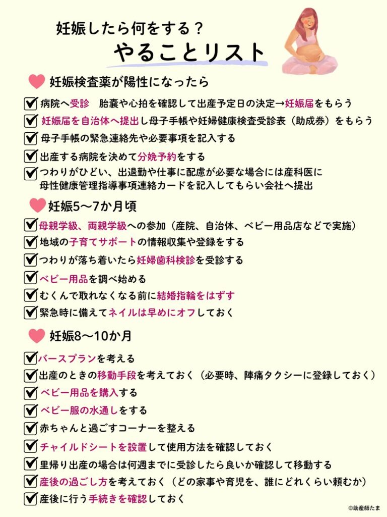 妊娠がわかったら、いつ、何をすればいいの?やり残しがあって入院時や産後に困ることがないよう、まとめました!注意点や補足が必要なものについて詳しくまとめていくね。